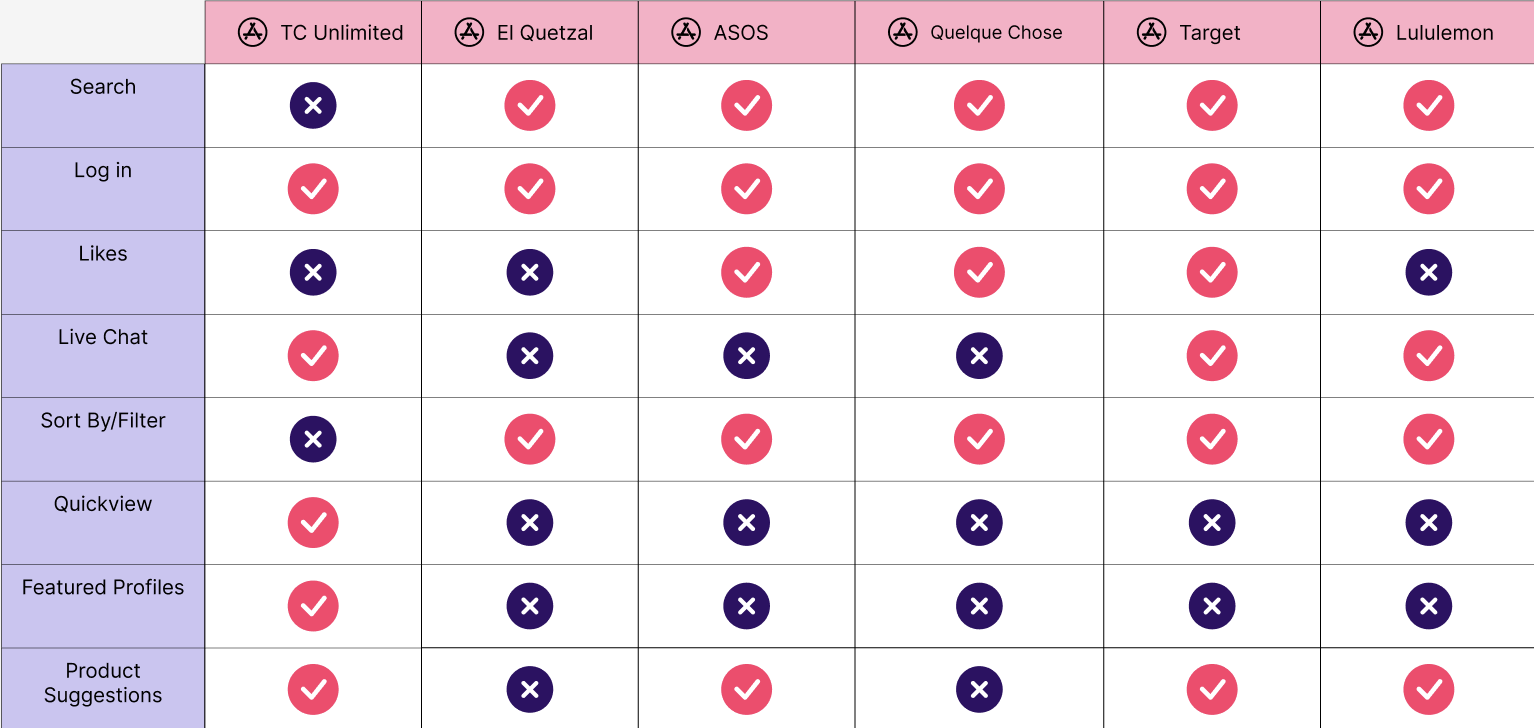 To better understand the market and identify key features for the redesign of TC Unlimited, I conducted competitive research